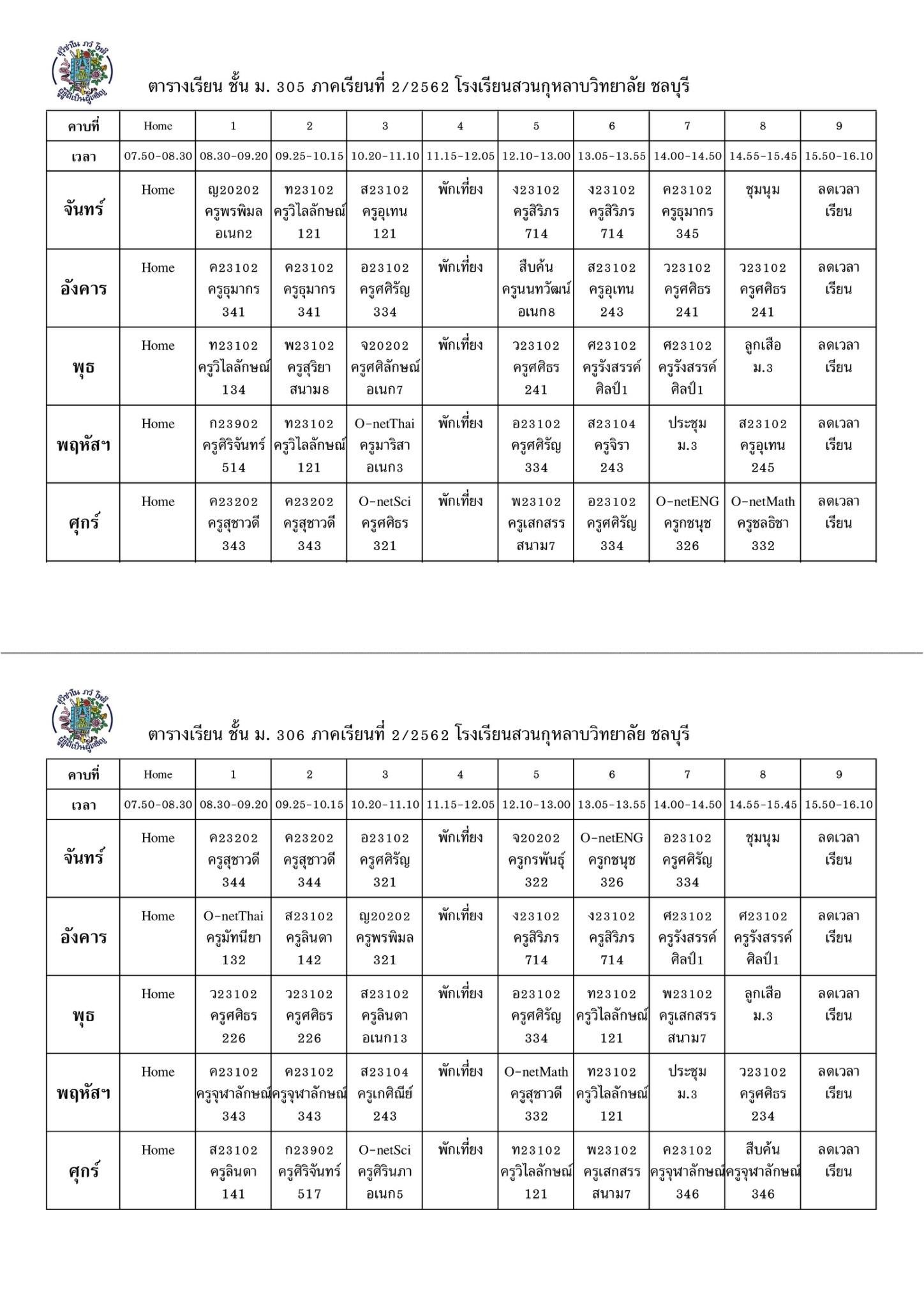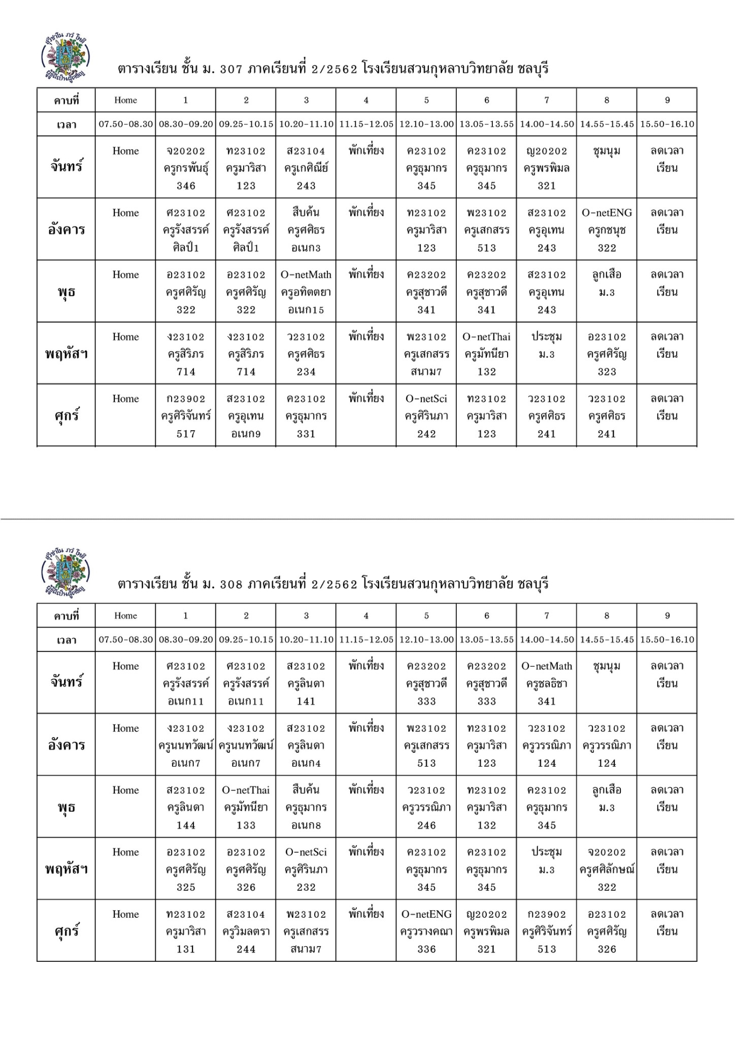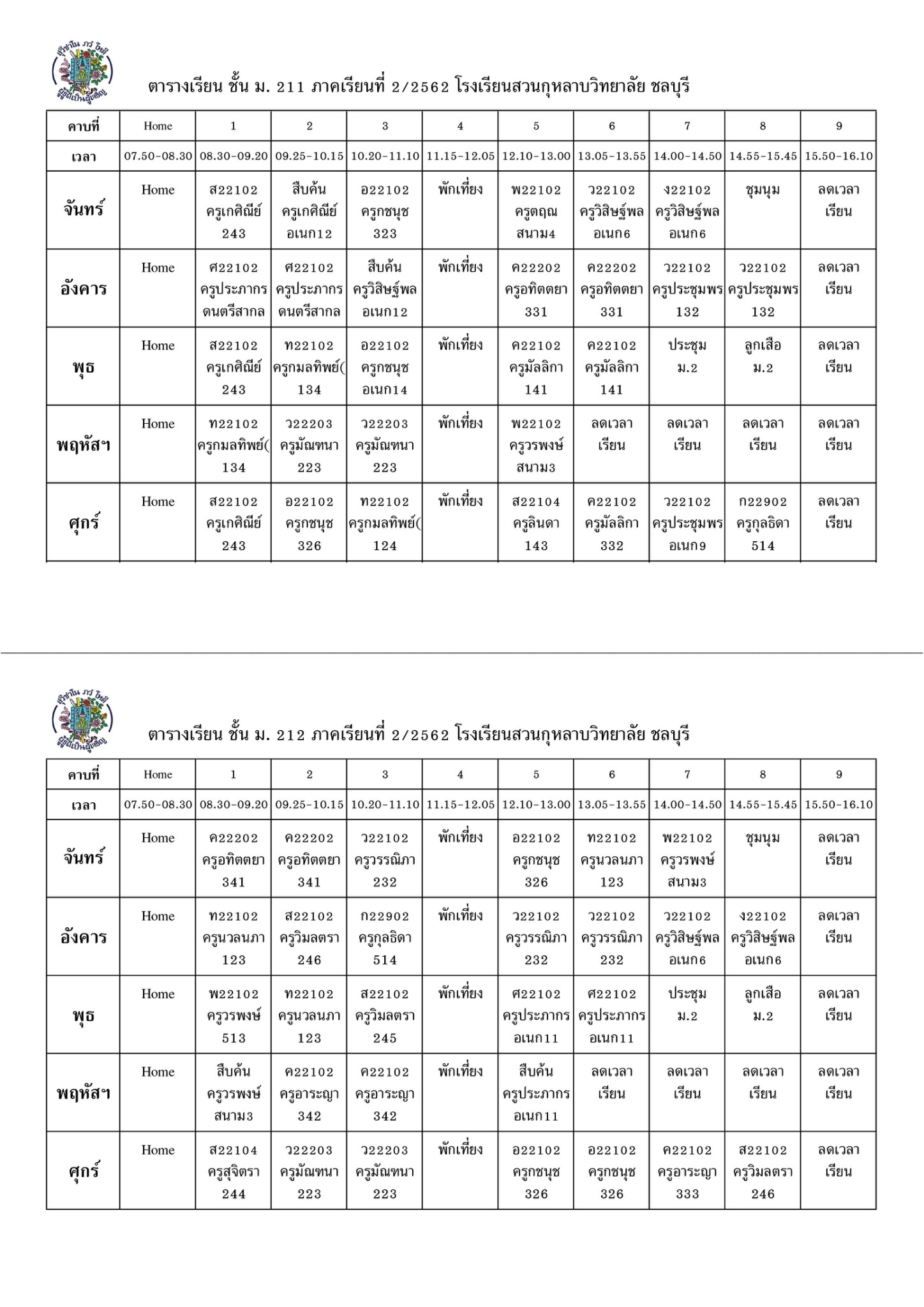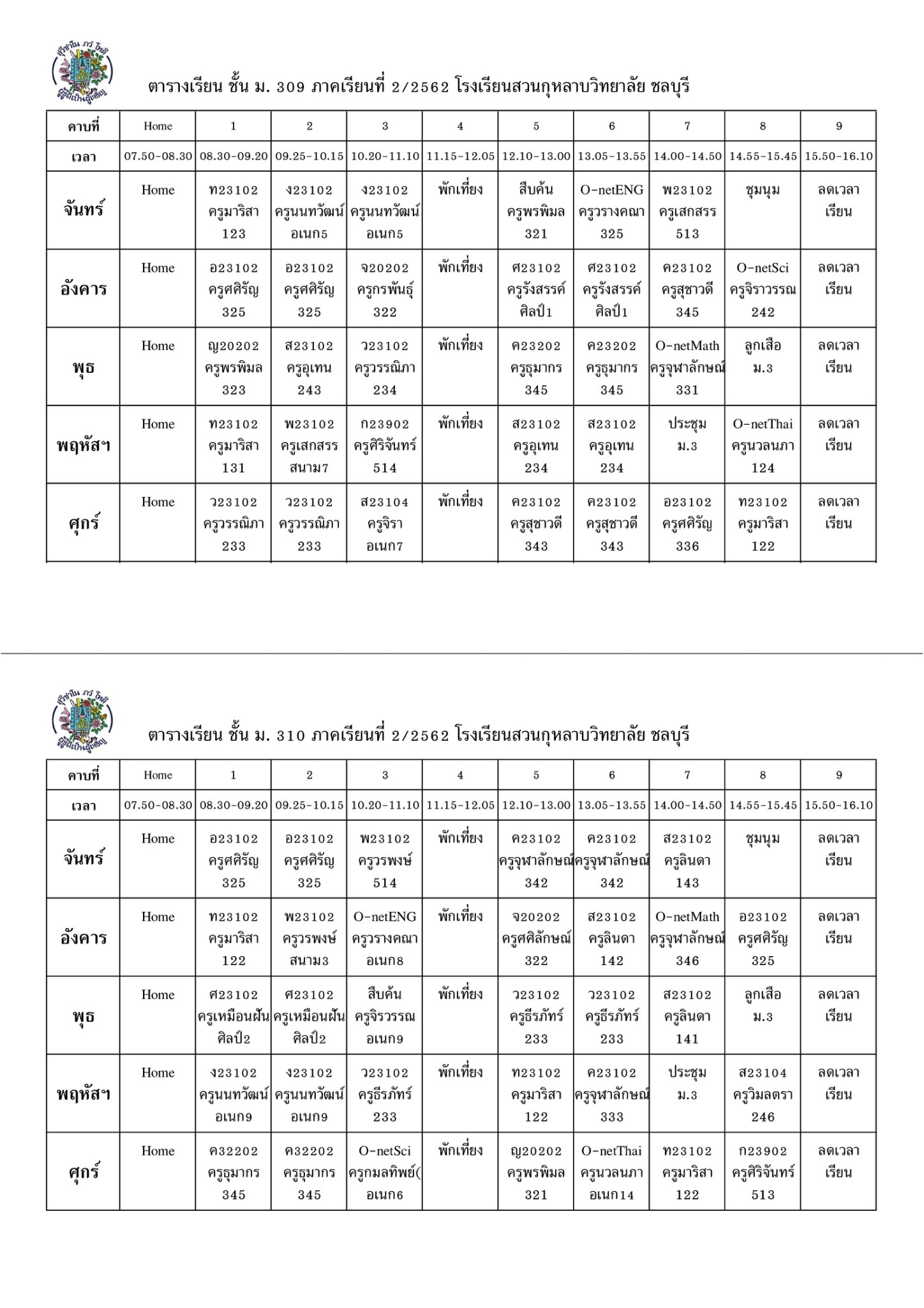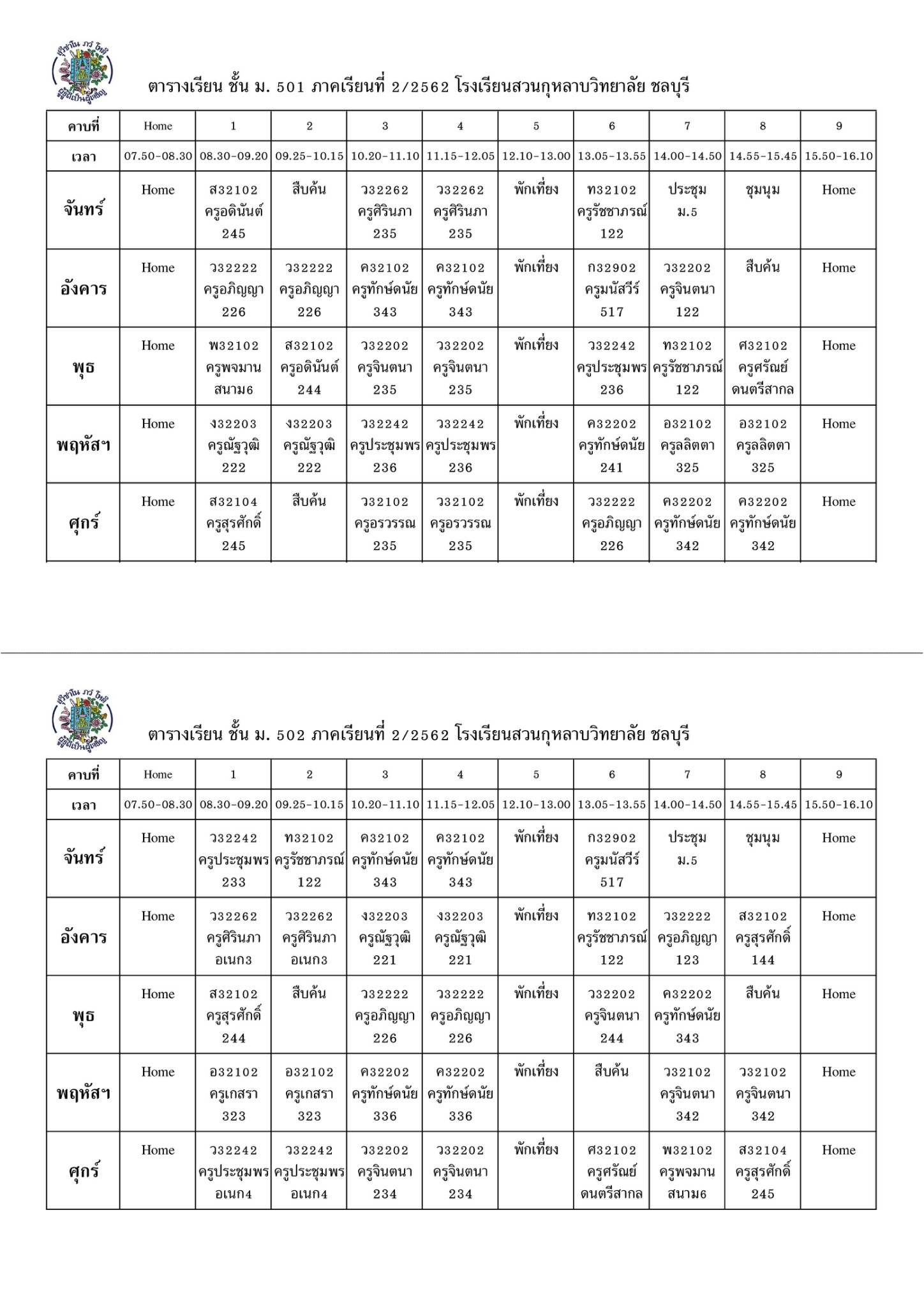 ตรวจสอบตารางเรียนของนักเรียนแต่ละระดับชั้น ประจำปีการศึกษา 2/2562