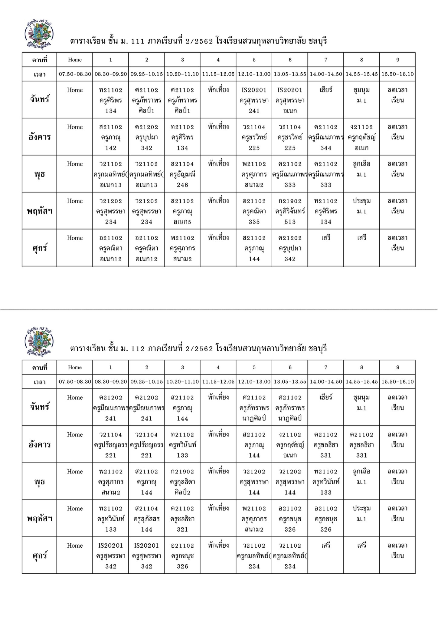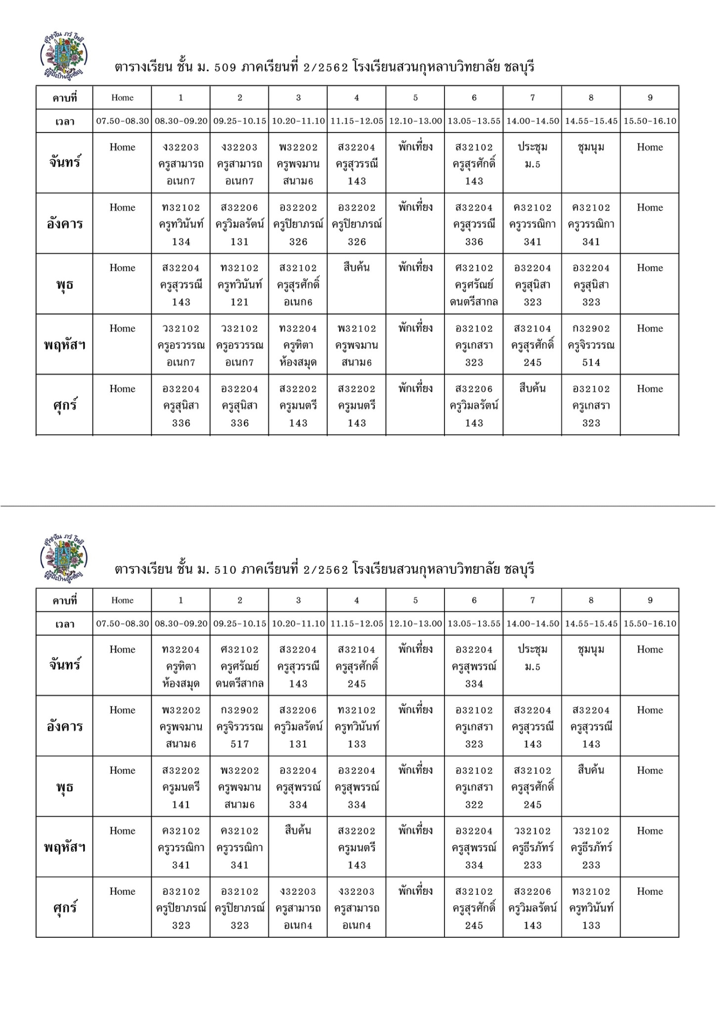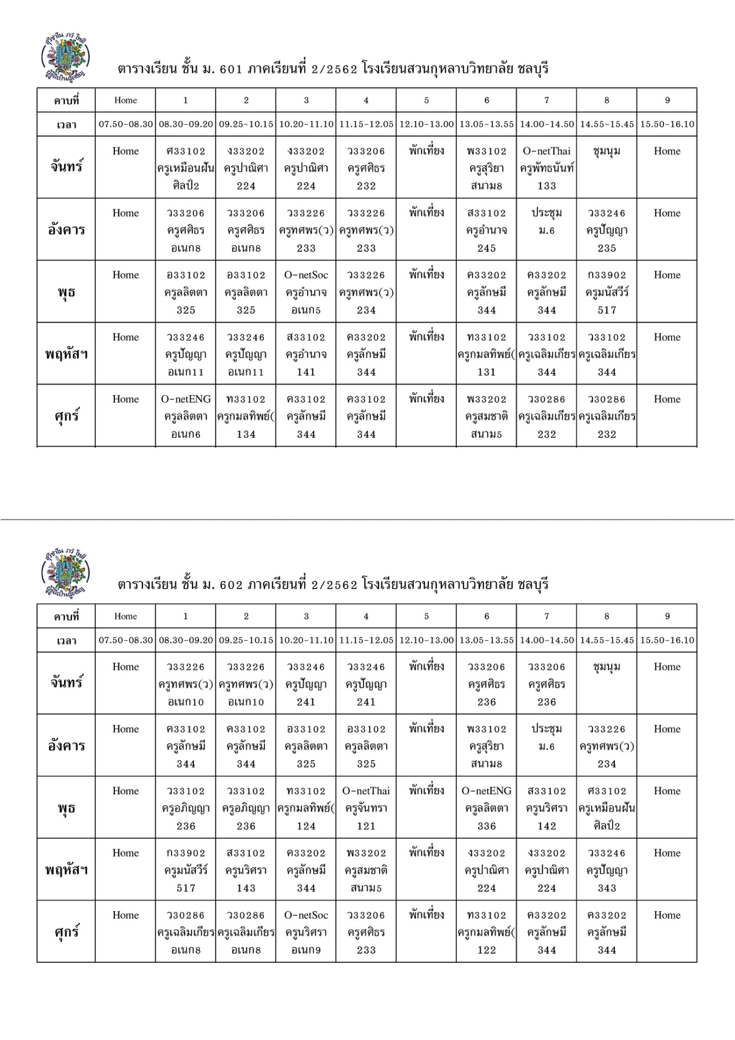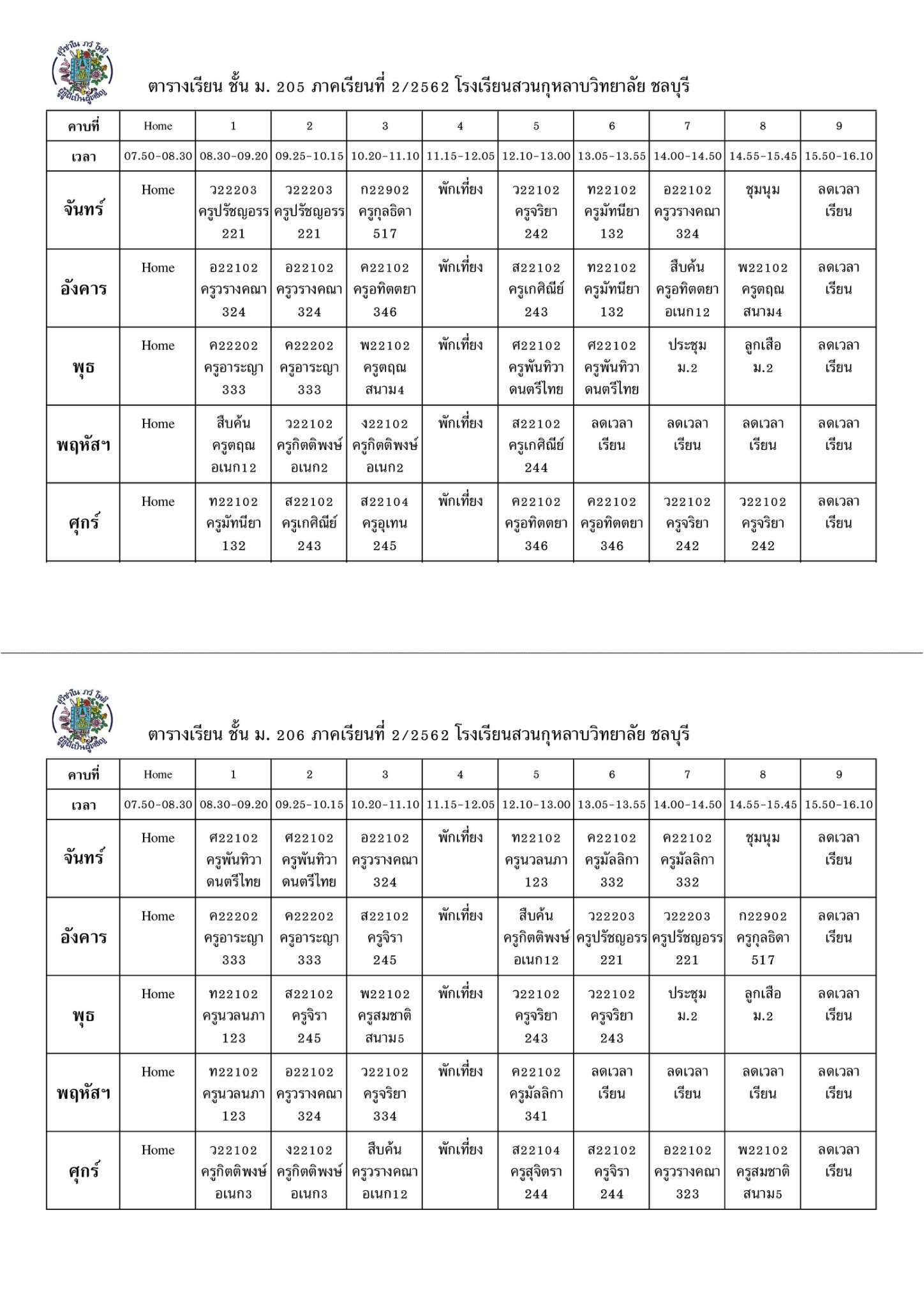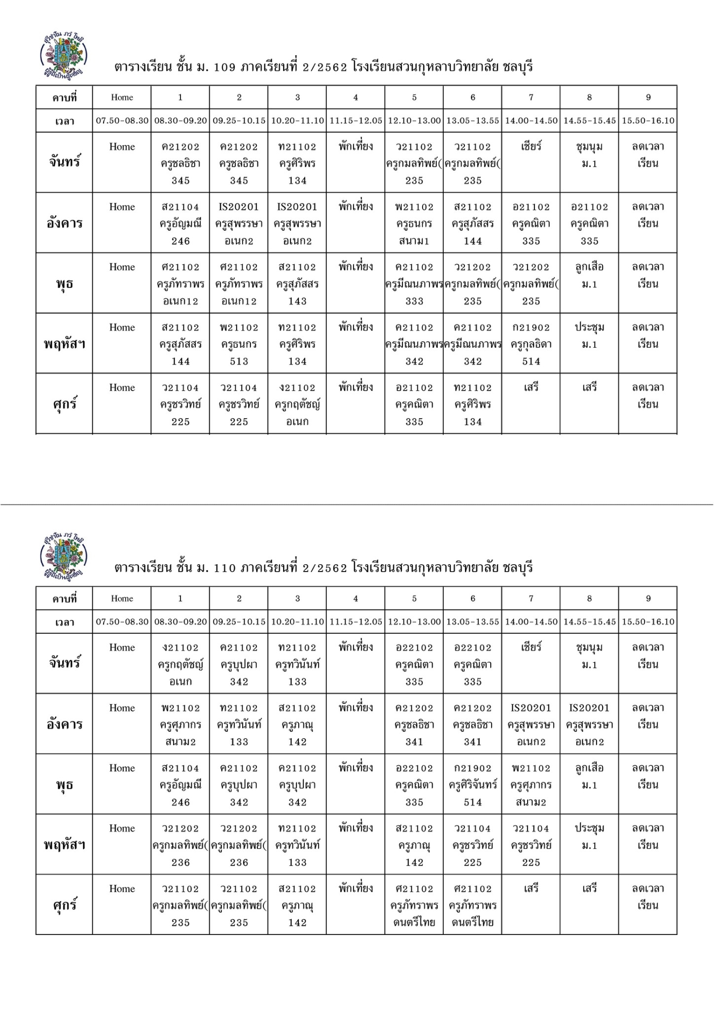 ตรวจสอบตารางเรียนของนักเรียนแต่ละระดับชั้น ประจำปีการศึกษา 2/2562