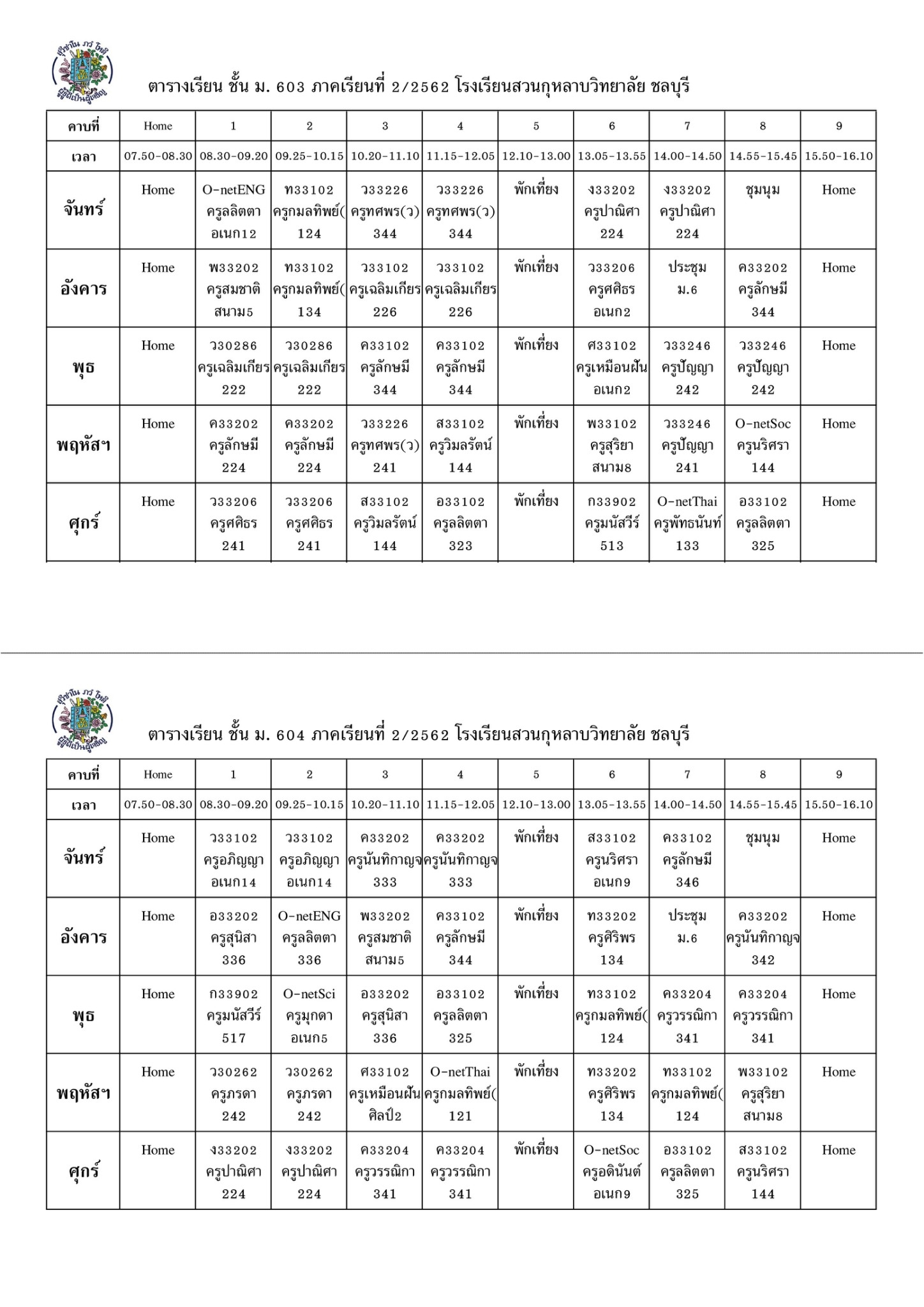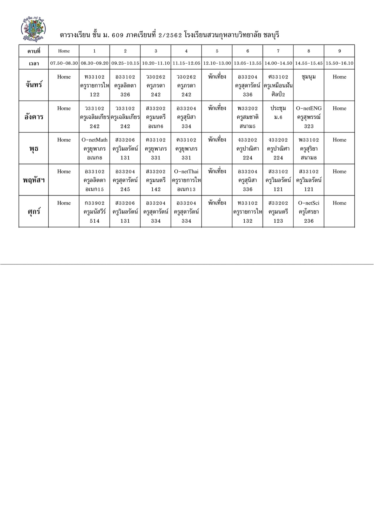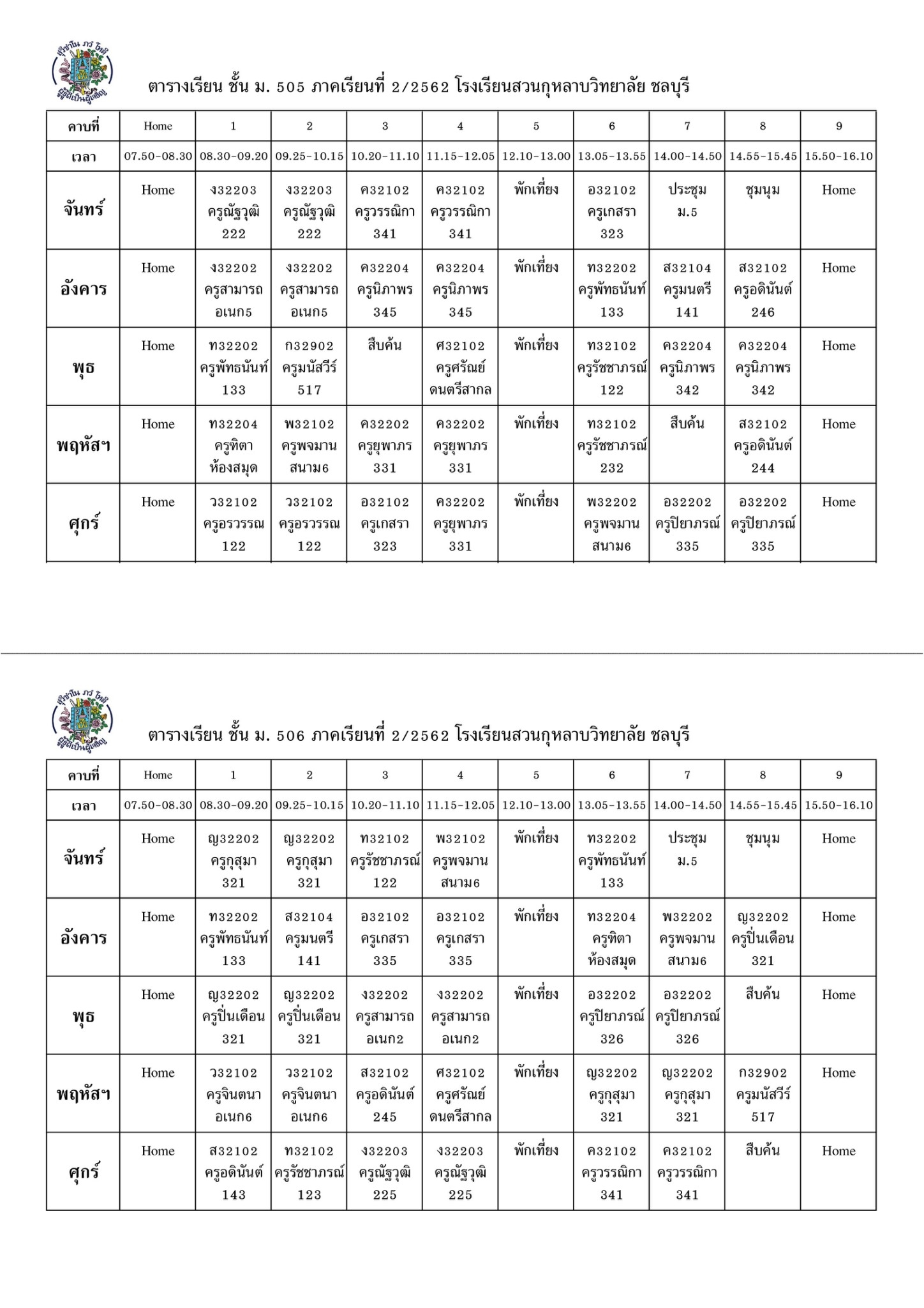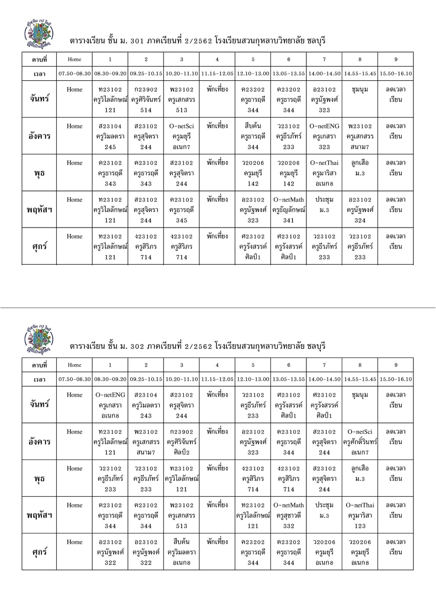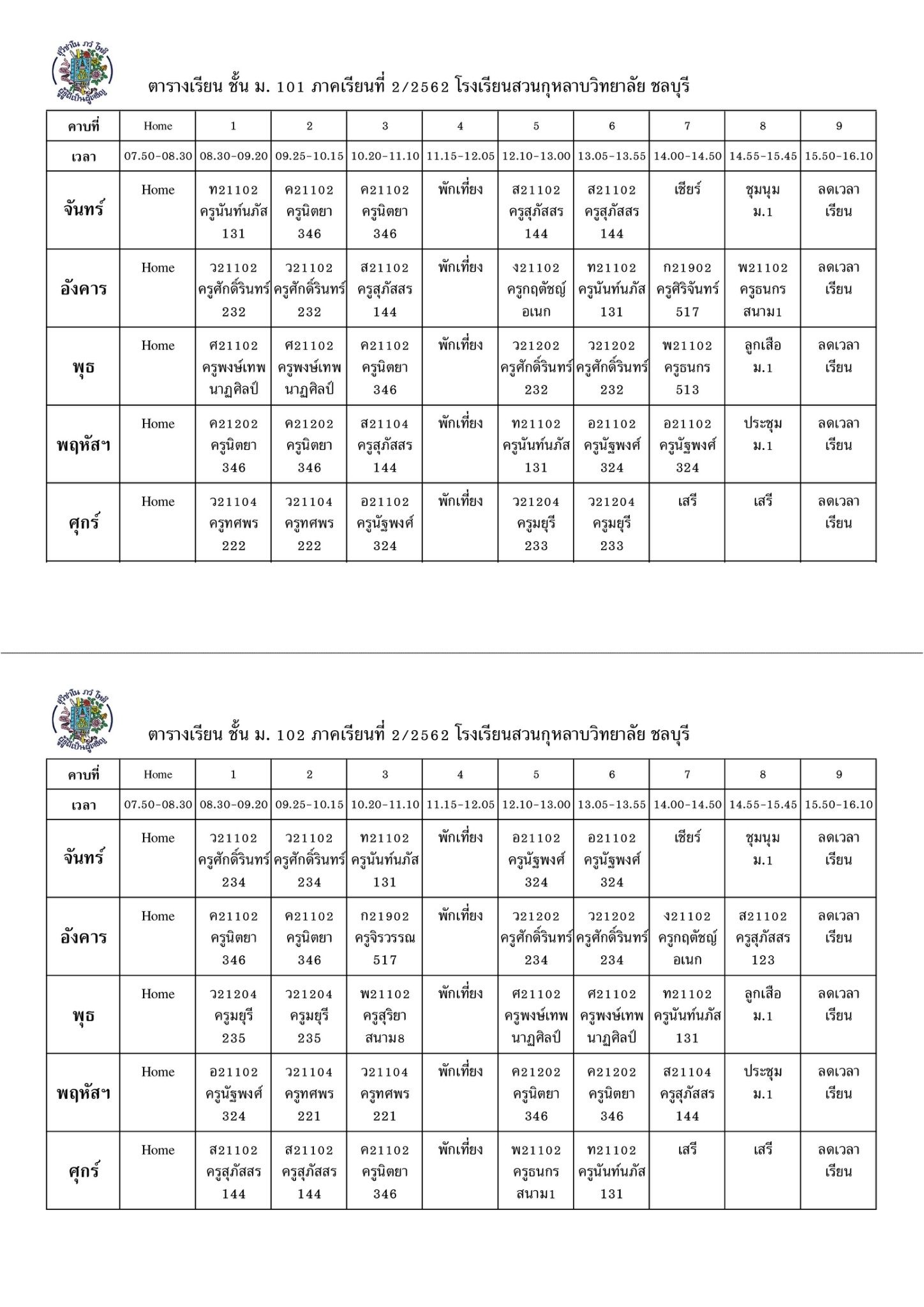 ตรวจสอบตารางเรียนของนักเรียนแต่ละระดับชั้น ประจำปีการศึกษา 2/2562
