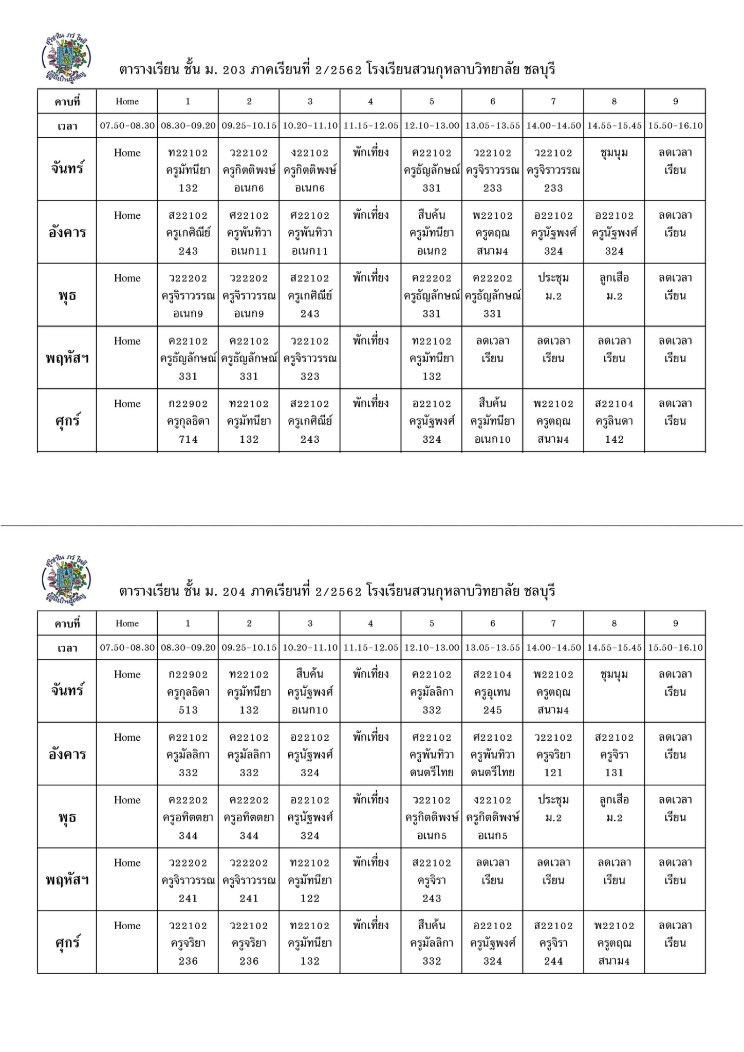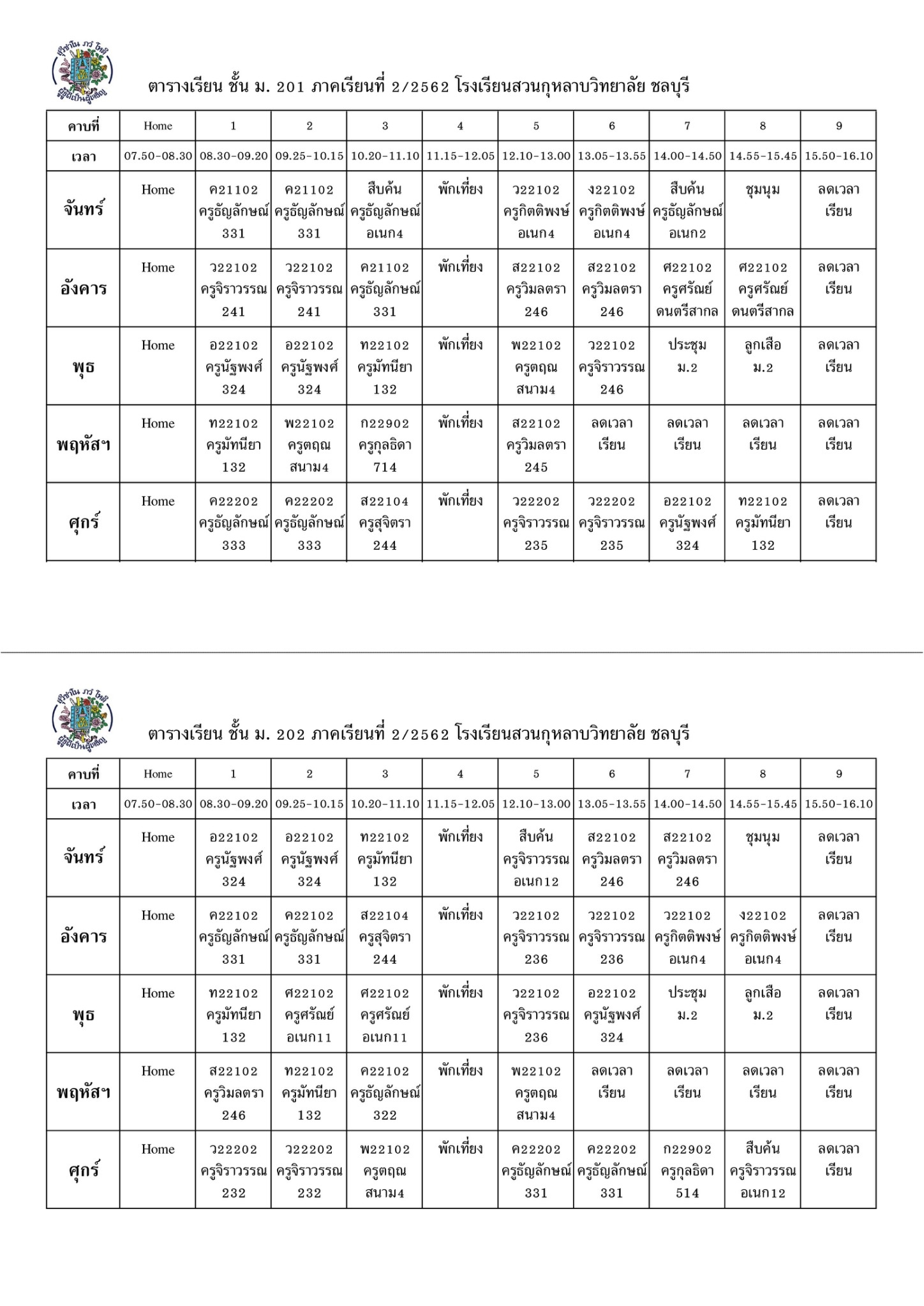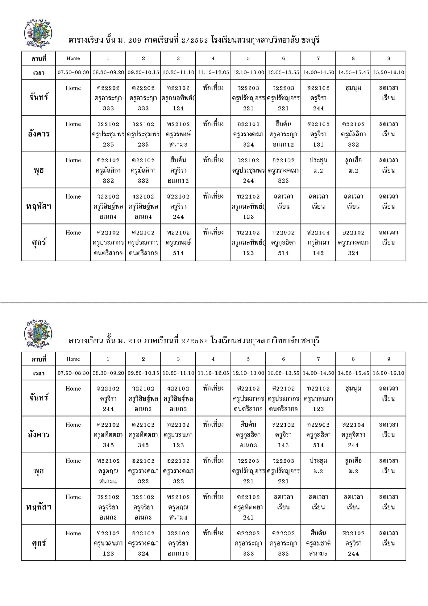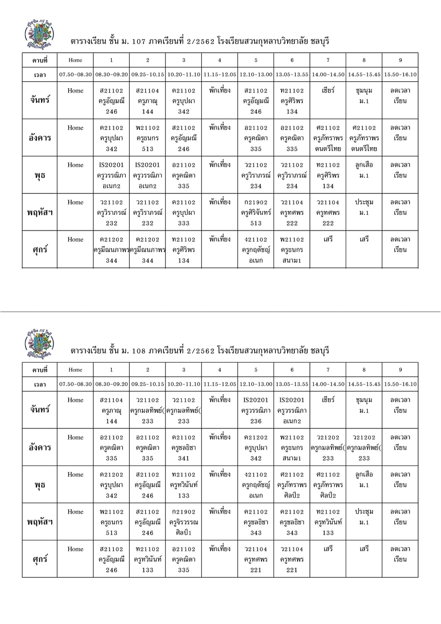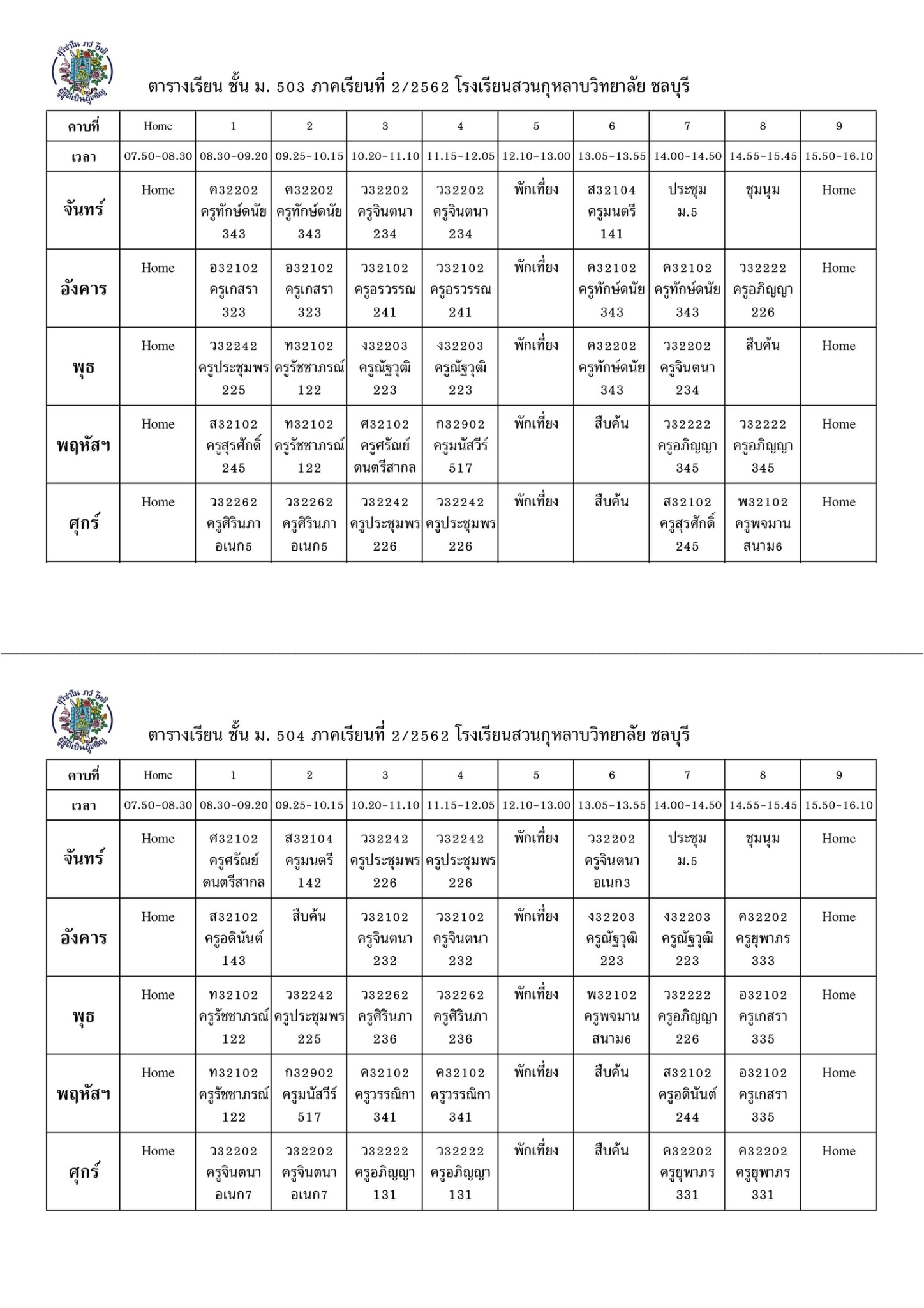 ตรวจสอบตารางเรียนของนักเรียนแต่ละระดับชั้น ประจำปีการศึกษา 2/2562