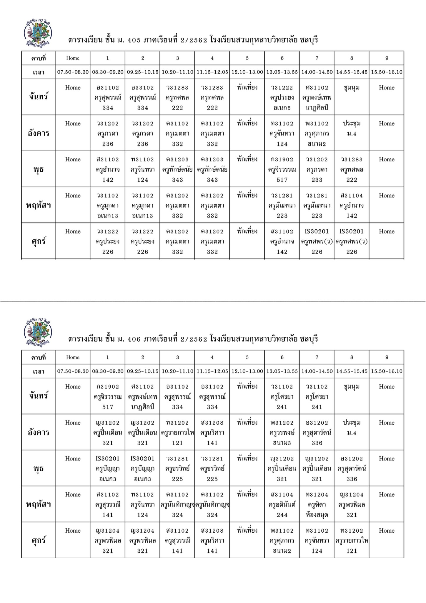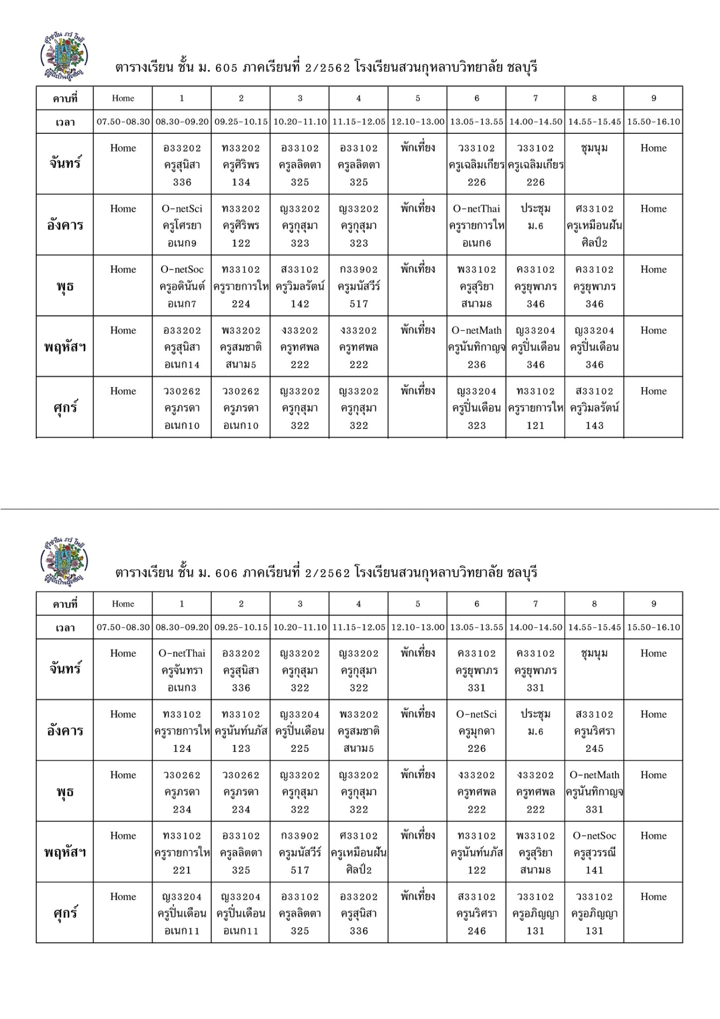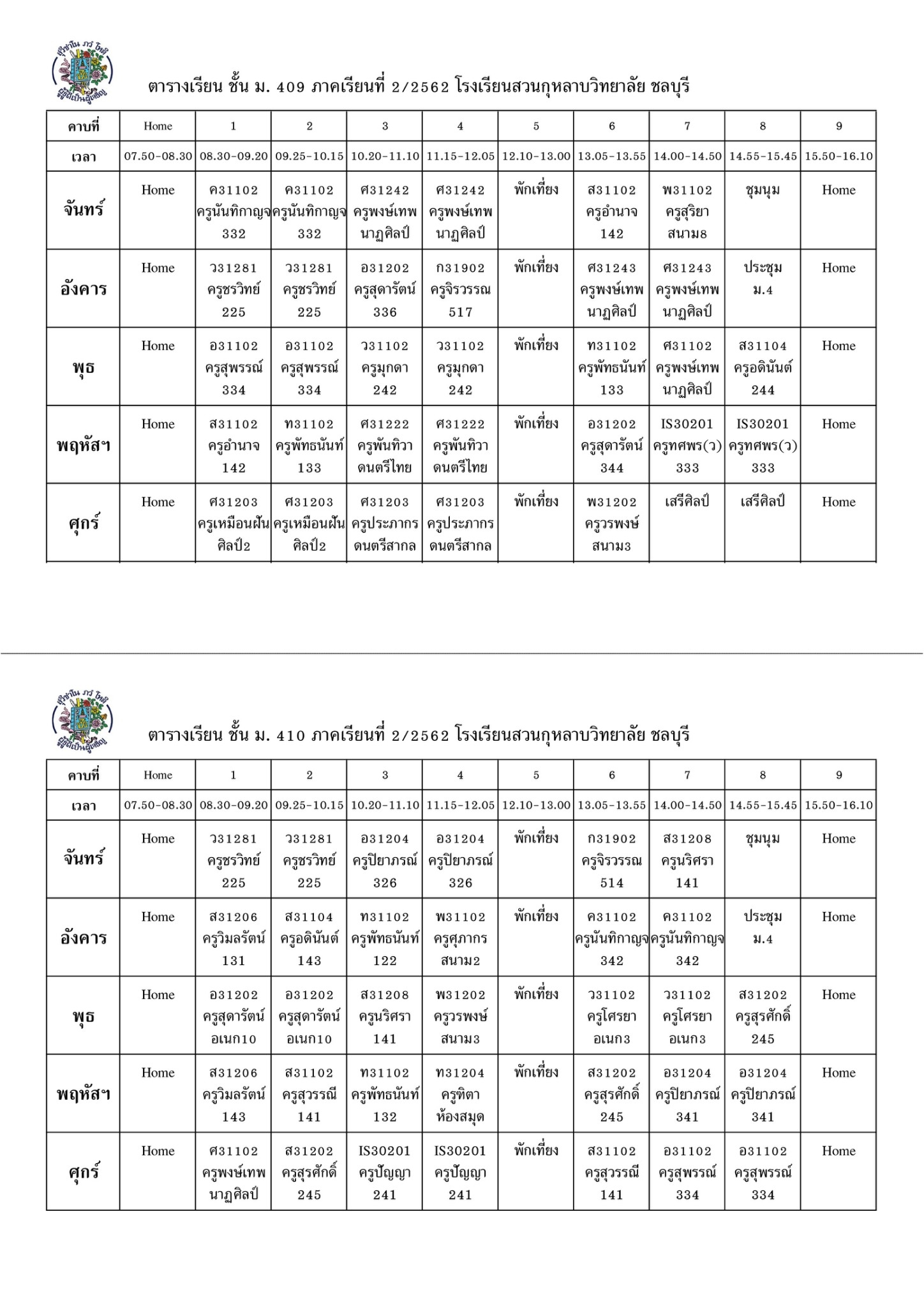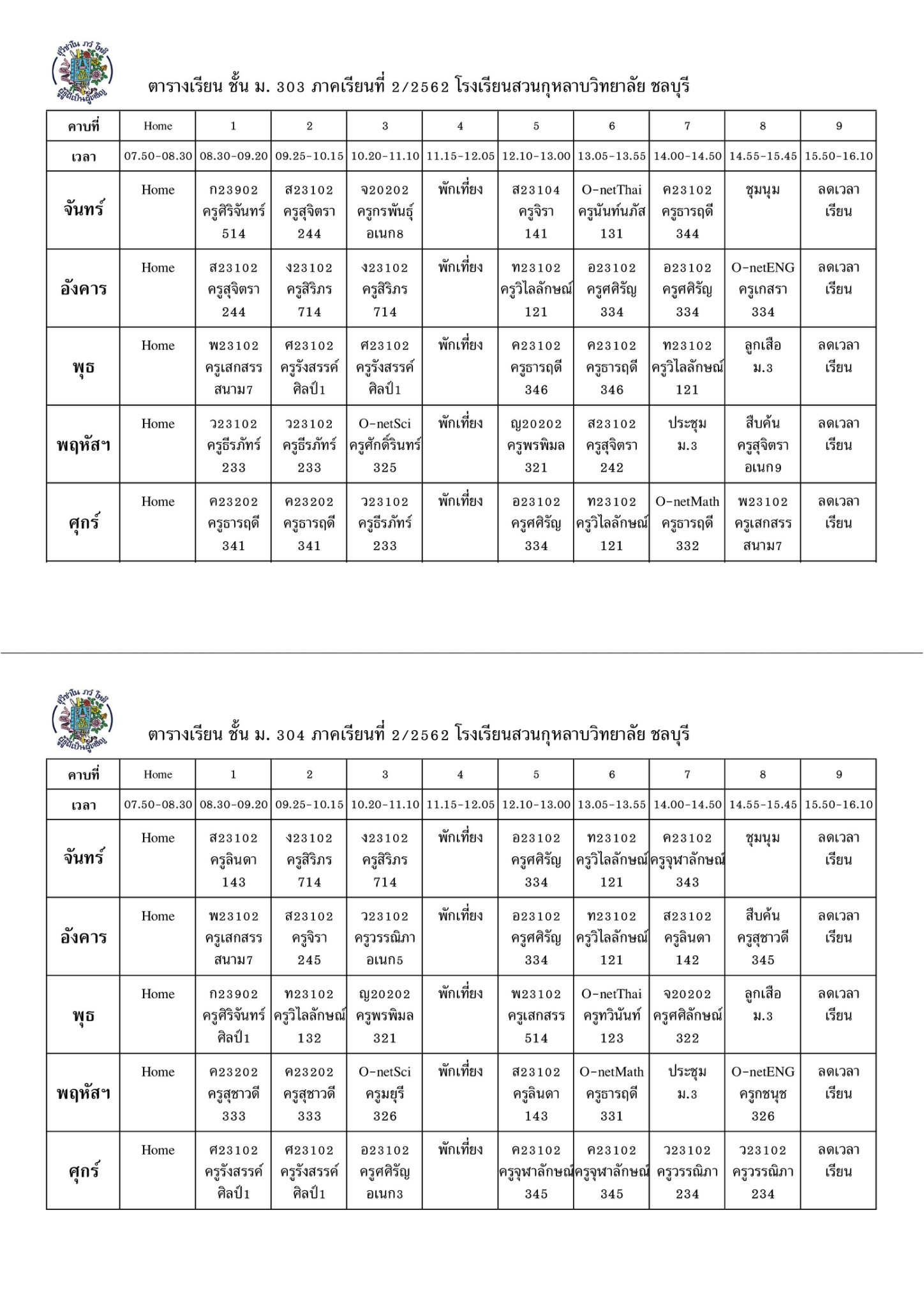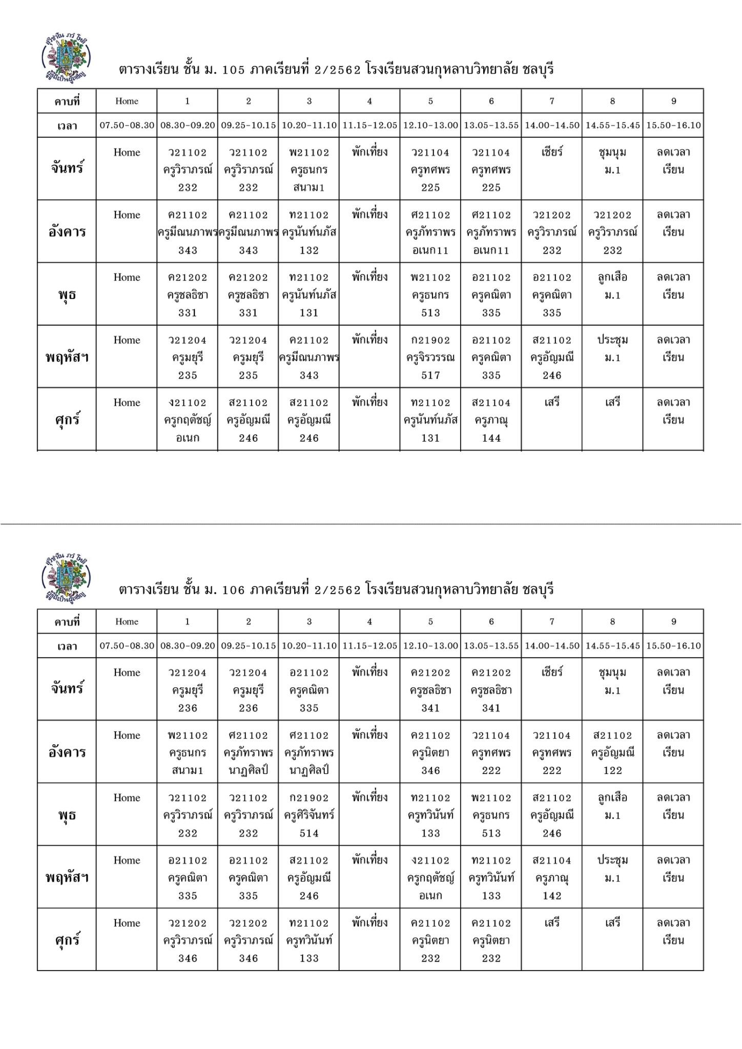 ตรวจสอบตารางเรียนของนักเรียนแต่ละระดับชั้น ประจำปีการศึกษา 2/2562