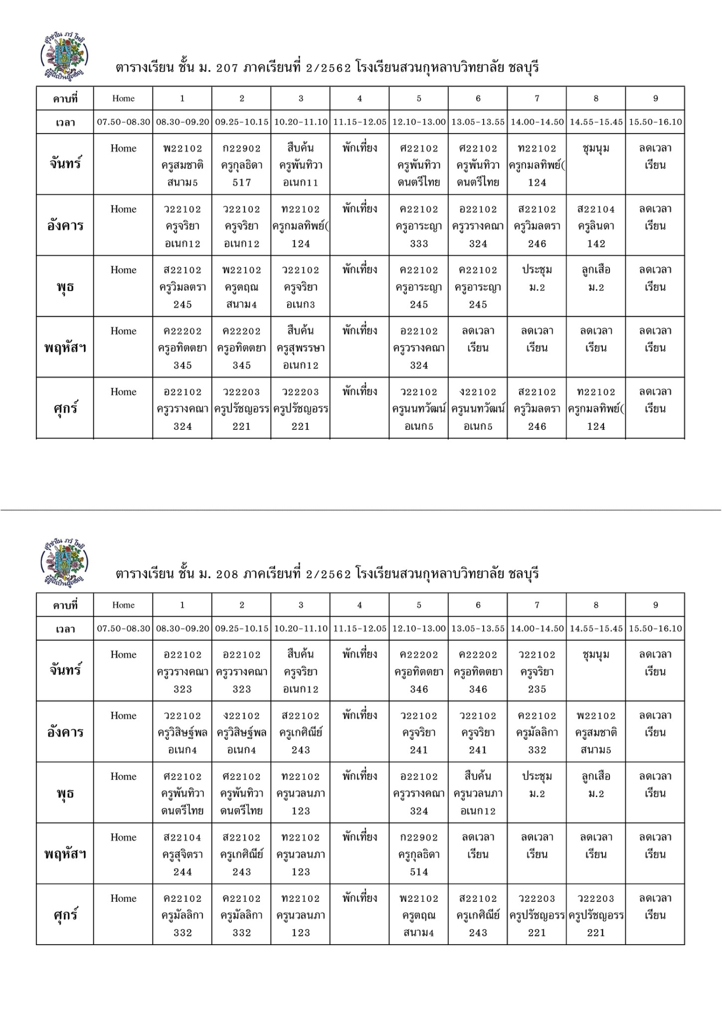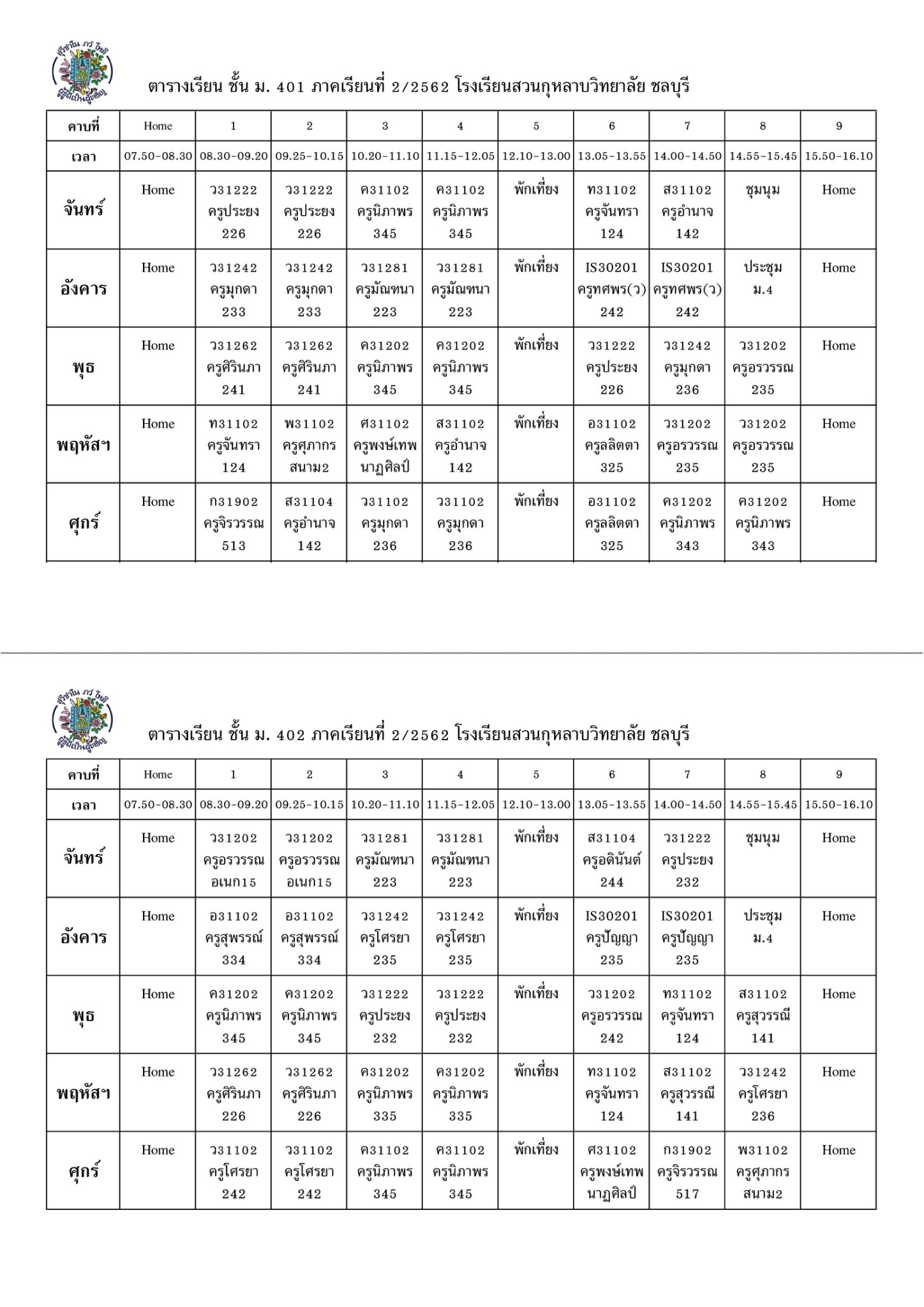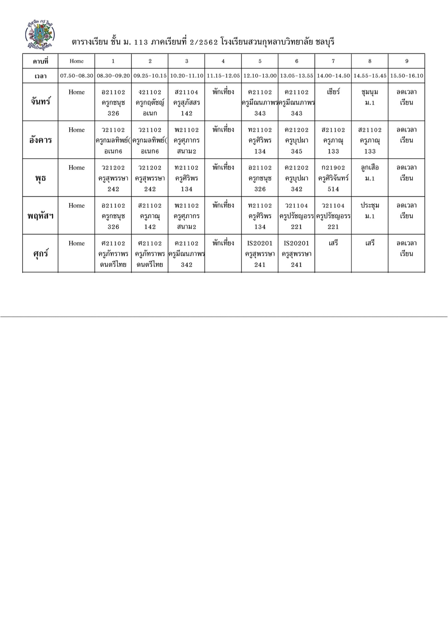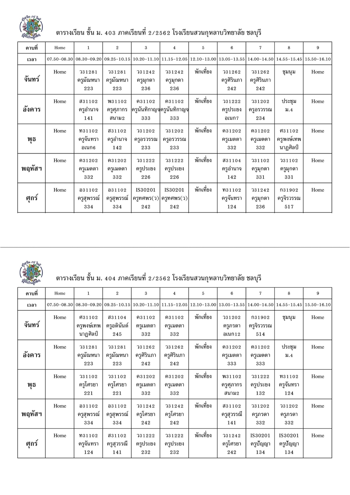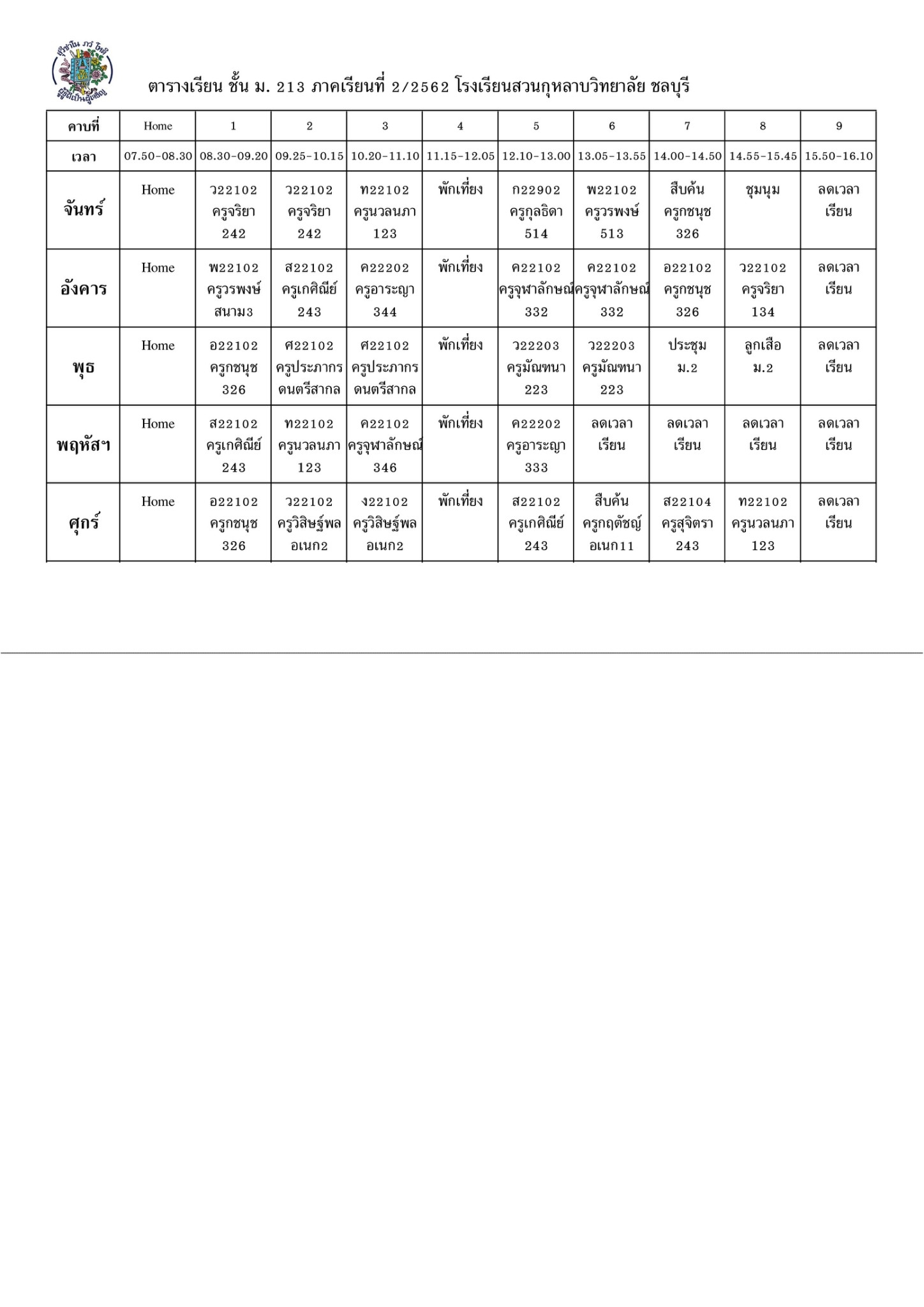 ตรวจสอบตารางเรียนของนักเรียนแต่ละระดับชั้น ประจำปีการศึกษา 2/2562