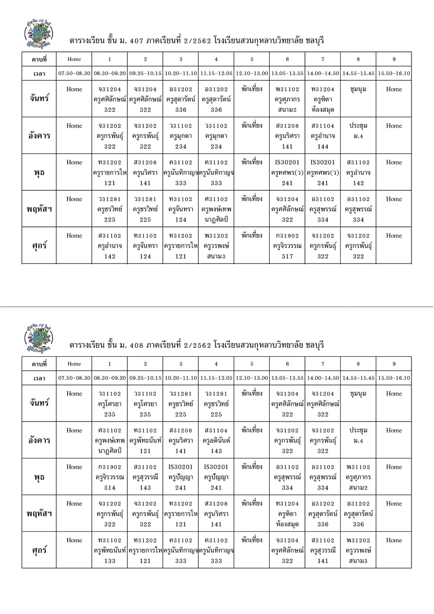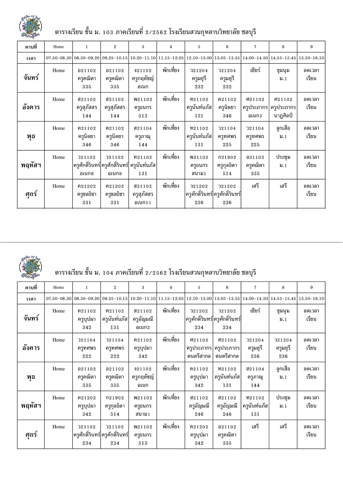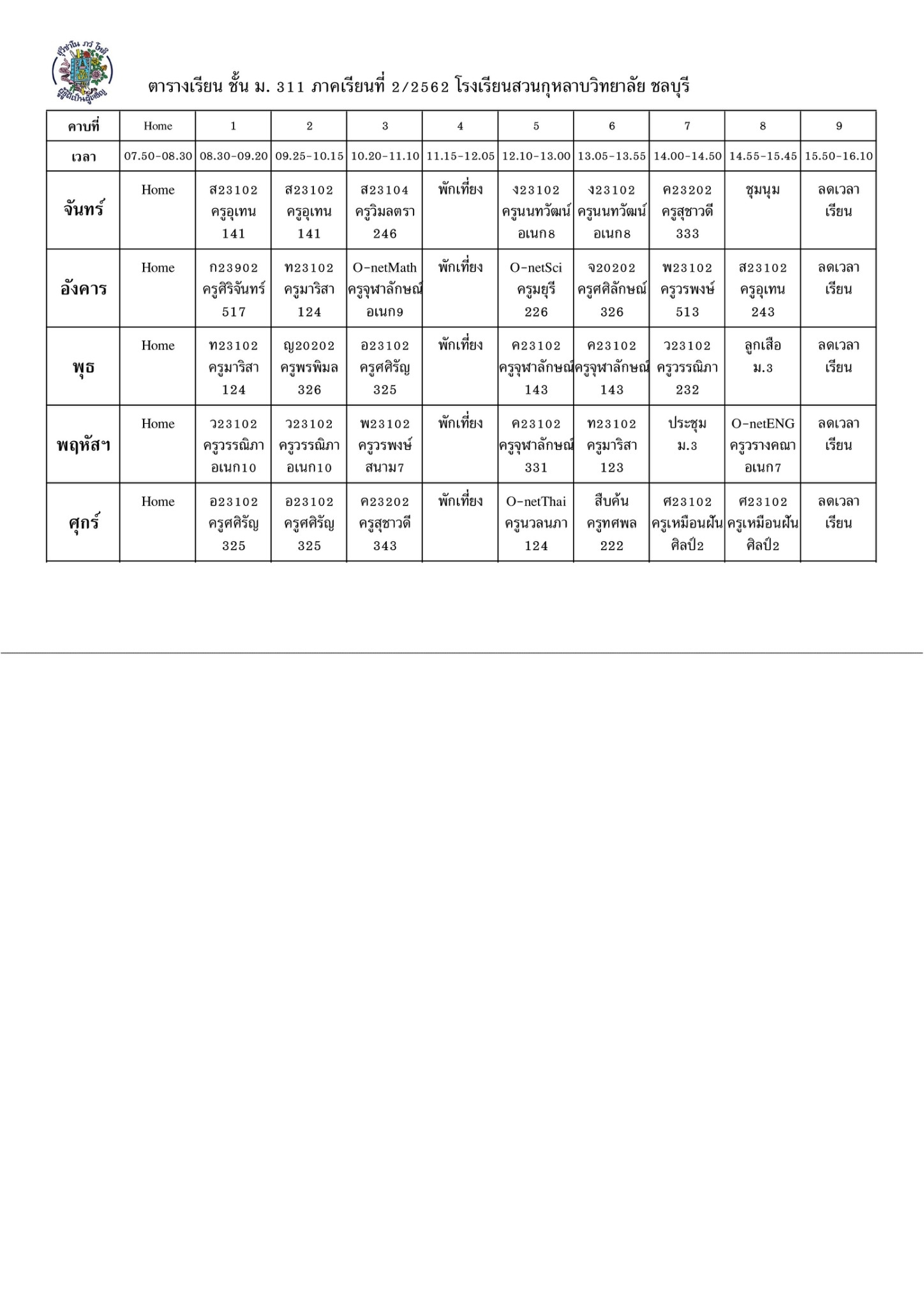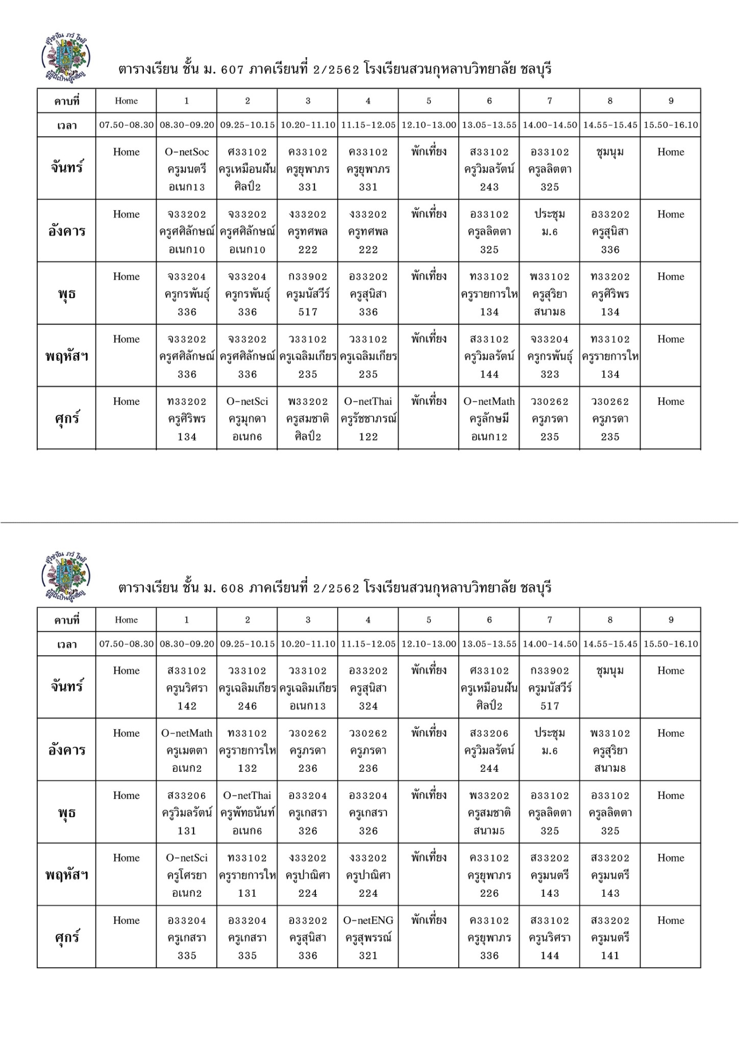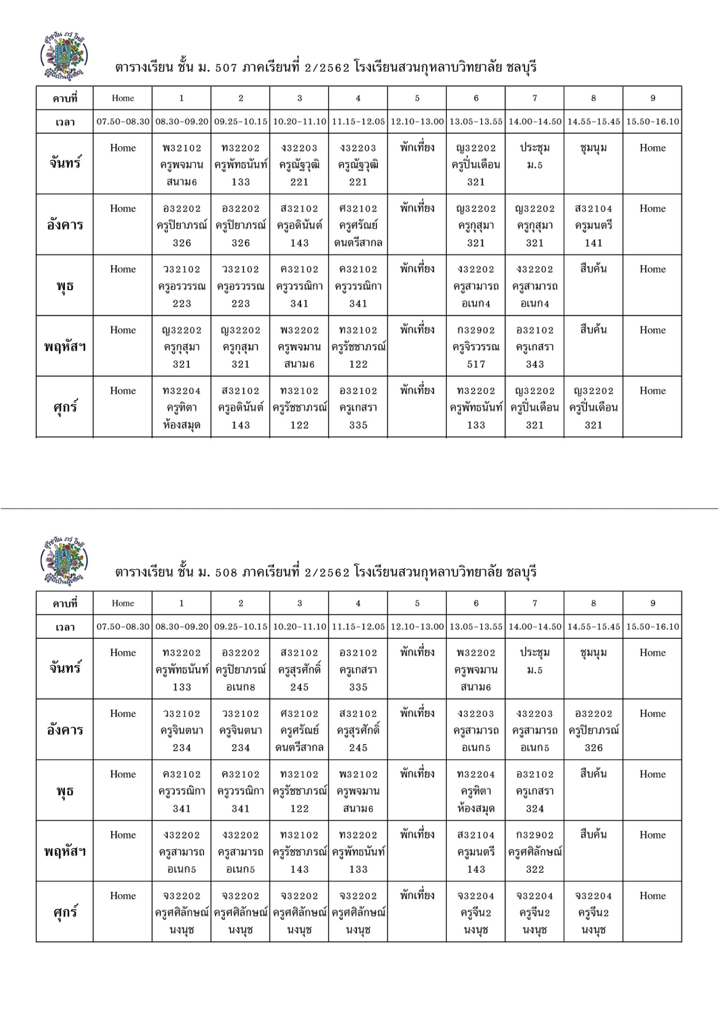 ตรวจสอบตารางเรียนของนักเรียนแต่ละระดับชั้น ประจำปีการศึกษา 2/2562