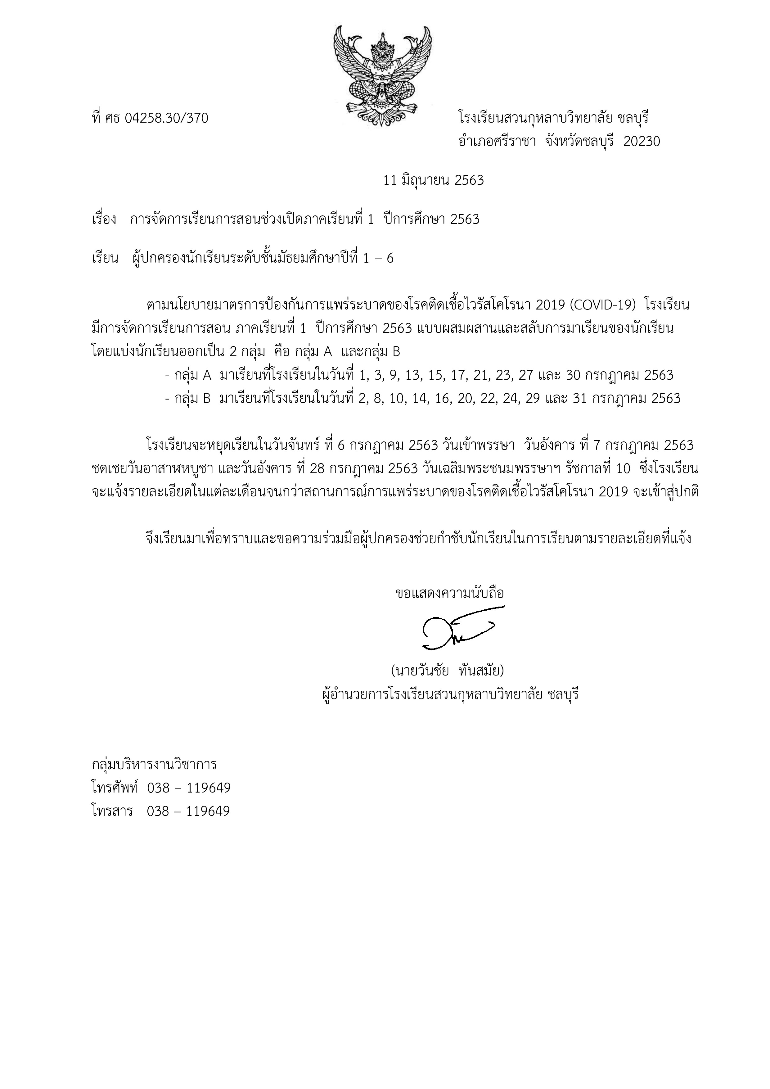 ประชาสัมพันธ์ ประกาศ ตารางเรียนประจำปีการศึกษา 2563 และการสลับวันมาเรียน suanchon มิถุนายน 24, 2020 ตารางเรียนชั้นมัธยมศึกษาปีที่ 1 ตารางเรียนชั้นมัธยมศึกษาปีที่ 2 ตารางเรียนชั้นมัธยมศึกษาปีที่ 3 ตารางเรียนชั้นมัธยมศึกษาปีที่ 4 ตารางเรียนชั้นมัธยมศึกษาปีที่ 5 ตารางเรียนชั้นมัธยมศึกษาปีที่ 6 Post navigation Previous ประกาศ ! การไว้ทรงผมของนักเรียนโรงเรียนสวนกุหลาบวิทยาลัย ชลบุรีNext การแบ่งกอง/แบ่งหมู่ลูกเสือ-เนตรนารี ประจำภาคเรียนที่ 1 ปีการศึกษา 2563 More Stories 1 min read ประชาสัมพันธ์ ประกาศโรงเรียนสวนกุหลาบวิทยาลัย ชลบุรี เรื่อง รับสมัครบุคคลเพื่อสรรหาเป็นพนักงานทั่วไป สิงหาคม 13, 2025 suanchon 1 min read ประชาสัมพันธ์ ประกาศโรงเรียนสวนกุหลาบวิทยาลัย ชลบุรี เรื่อง รับสมัครบุคคลเพื่อสรรหาเป็นพนักงานทั่วไป กรกฎาคม 29, 2025 suanchon 1 min read ประชาสัมพันธ์ ประกาศโรงเรียนสวนกุหลาบวิทยาลัย ชลบุรี เรื่อง การใช้มาตรฐานการศึกษาของสถานศึกษา ระดับการศึกษาขั้นพื้นฐาน เพื่อการประกันคุณภาพภายในของสถานศึกษา ปีการศึกษา ๒๕๖๘ มิถุนายน 20, 2025 suanchon