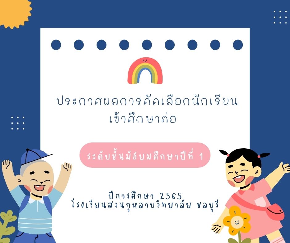 ประกาศผลการคัดเลือกนักเรียนเข้าศึกษาต่อ ระดับชั้นมัธยมศึกษาปีที่ 1 ปีการศึกษา 2565