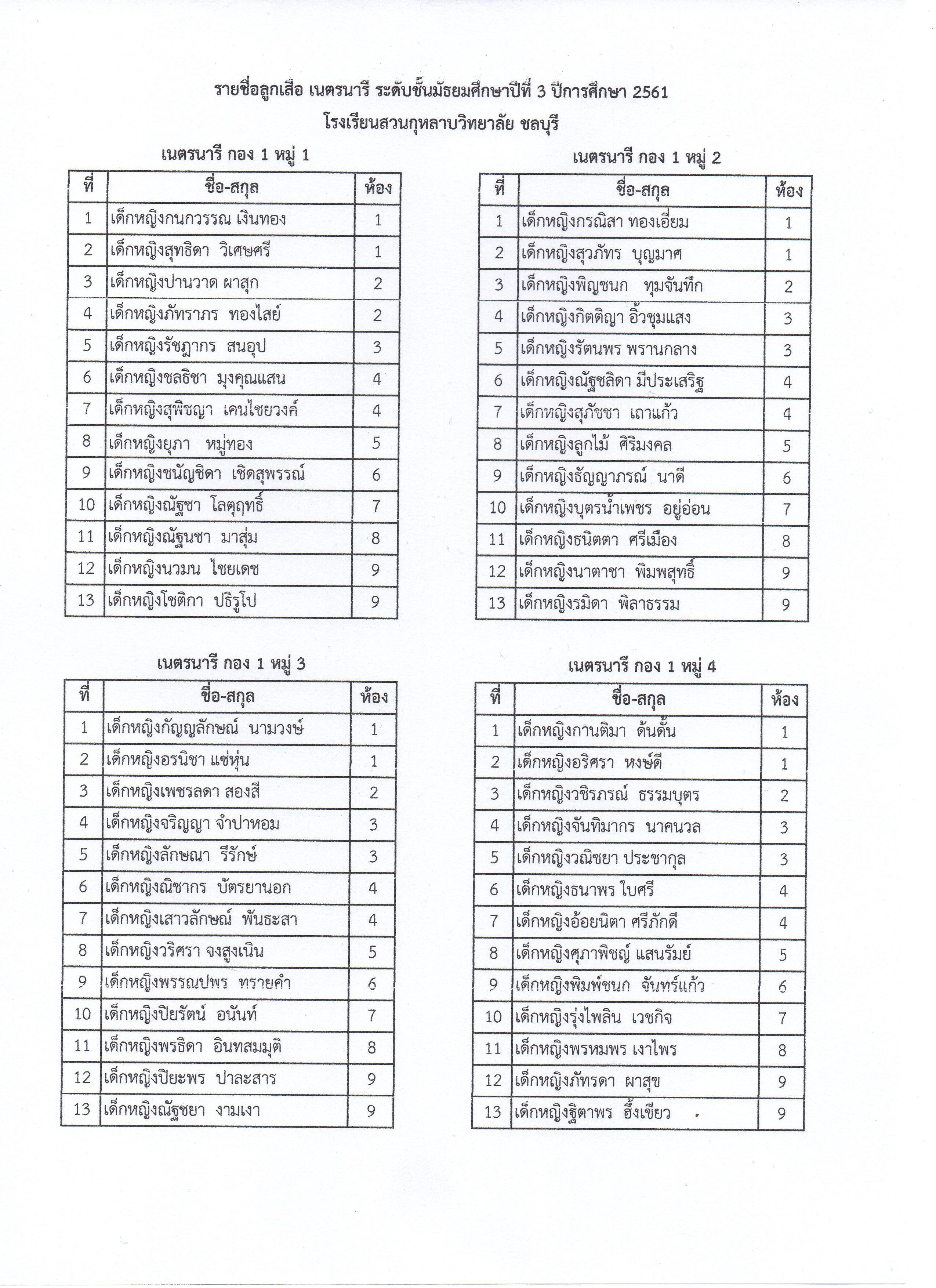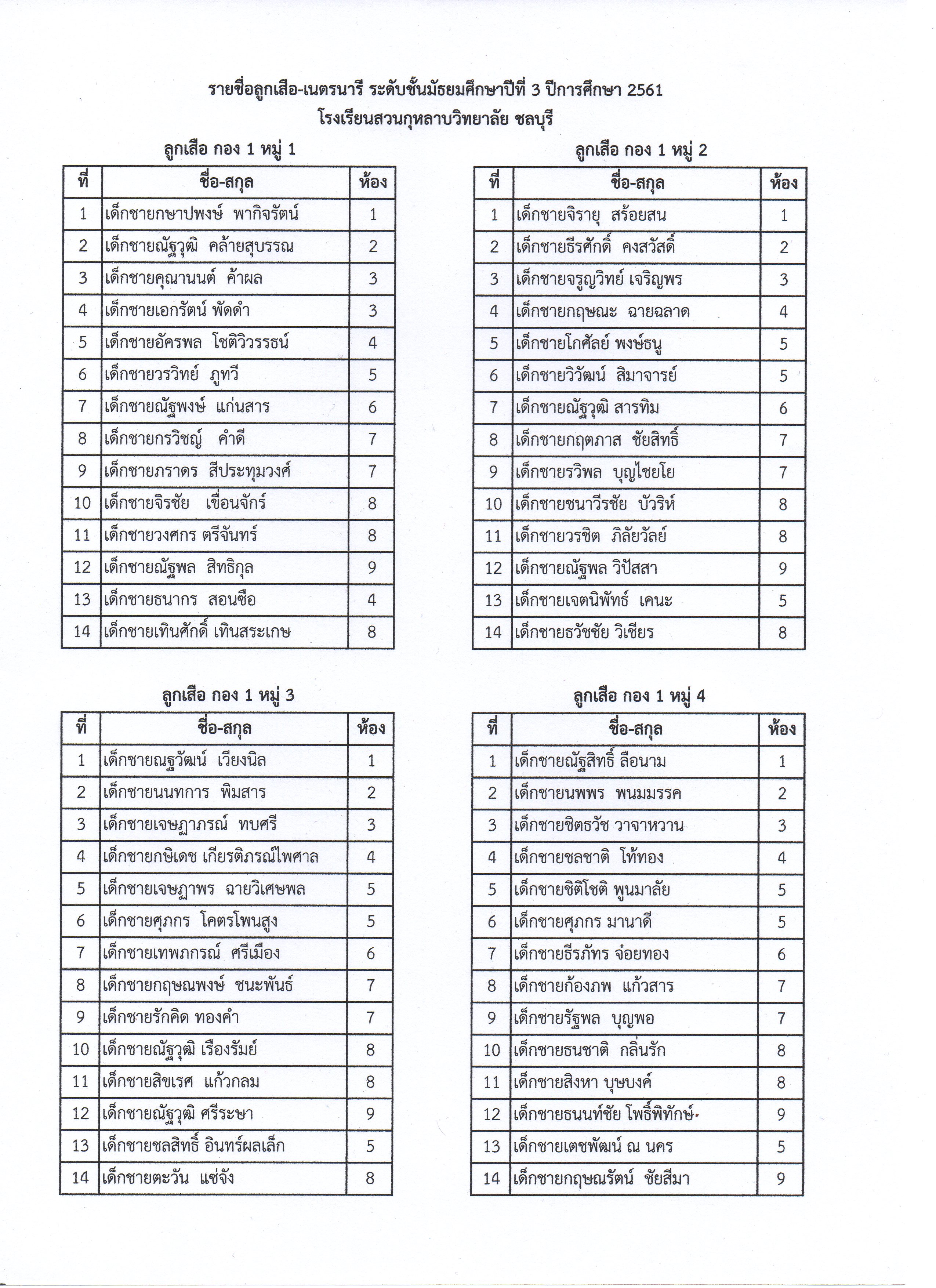โรงเรียนสวนกุหลาบวิทยาลัย ชลบุรี ขอแจ้งรายชื่อลูกเสือ – เนตรนารี ระดับชั้นมัธยมศึกษาปีที่ 3 ปีการศึกษา 2561