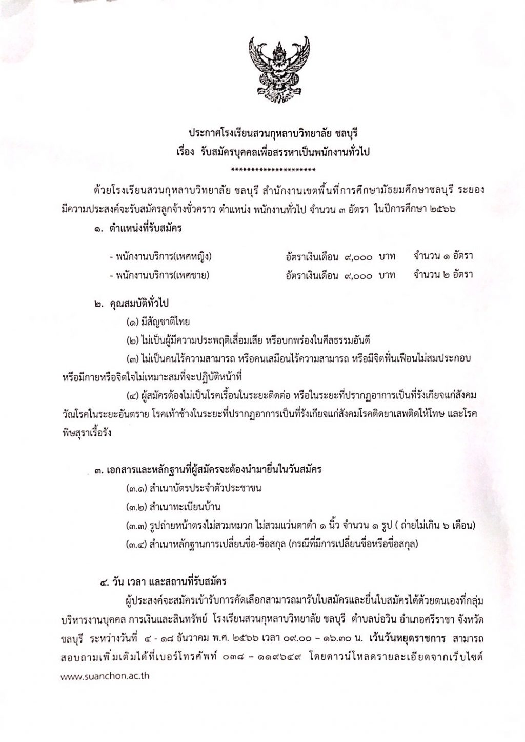 ประกาศรับสมัครบุคคลเพื่อสรรหาเป็นพนักงานทั่วไป จำนวน 3 อัตรา