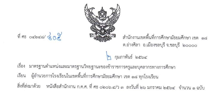 1 min read ประชาสัมพันธ์ เอกสาร มาตรฐานตำแหน่งและมาตรฐานวิทยฐานะของข้าราชการครูและบุคลากรทางการศึกษา กุมภาพันธ์ 11, 2021 suanchon หนังสือนำส่งสถา...