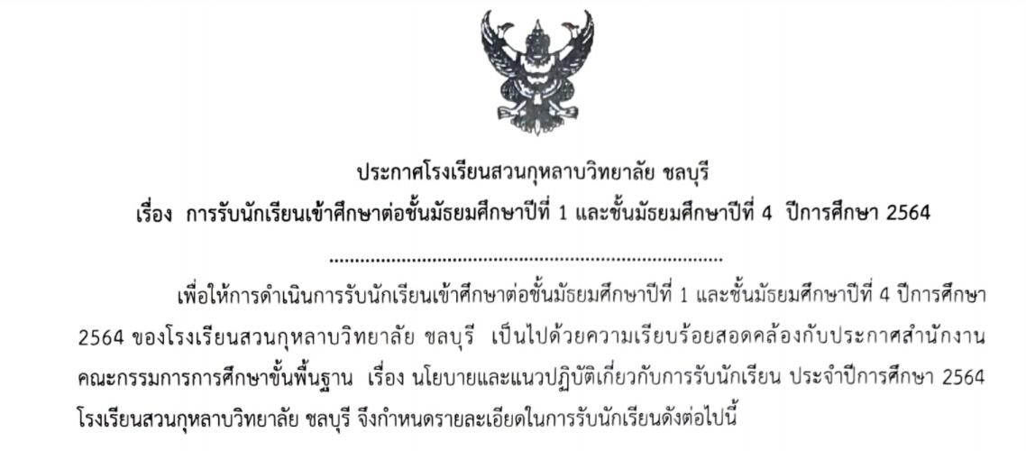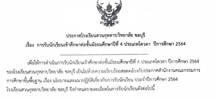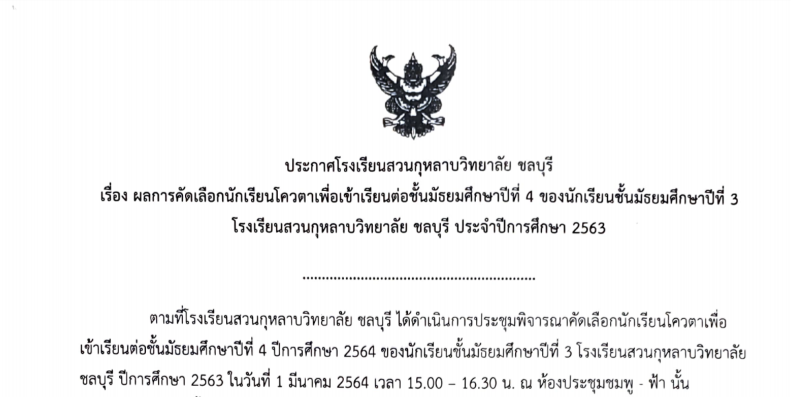 ประชาสัมพันธ์ ประกาศผลการพิจารณาโควตาเพื่อเข้าเรียนต่อชั้นมัธยมศึกษาปีที่ 4 ของนักเรียนชั้นมัธยมศึกษาปีที่ 3 โรงเรียนสวนกุหลาบวิทยาลัย ชลบุรี ประจำปีการศึกษา 2563 มีนาคม 10, 2021 suanchon