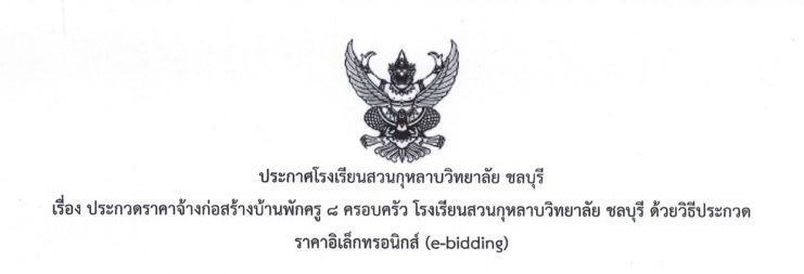 ประชาสัมพันธ์ ประกาศ !! ประกวดราคาจ้างก่อสร้างบ้านพักครู 8 ครอบครัว มีนาคม 6, 2020 suanchon ประกาศ !! ประกว...
