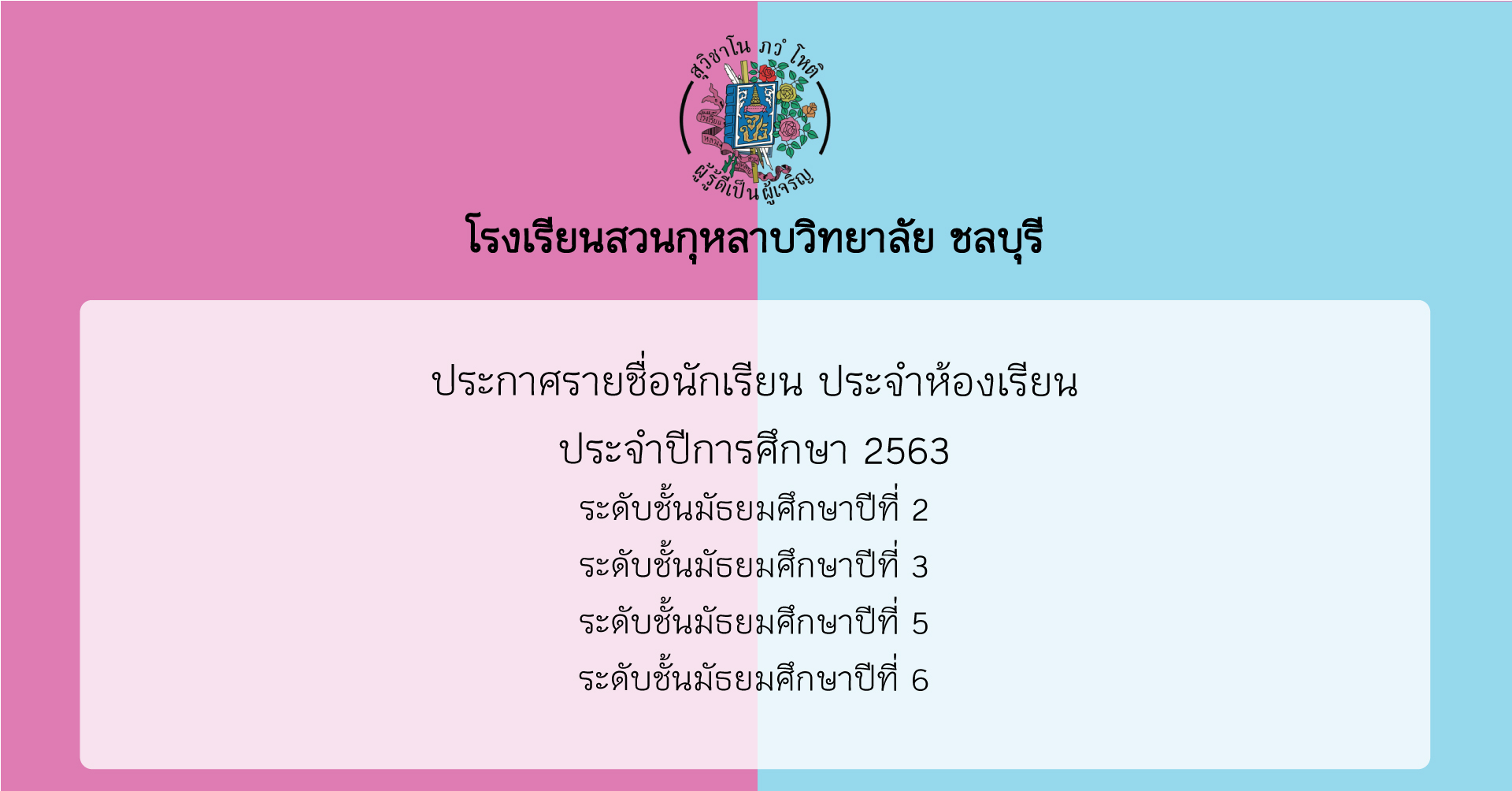ประชาสัมพันธ์ ประกาศรายชื่อนักเรียนแบ่งตามห้องเรียน ประจำปีการศึกษา 2563 พฤษภาคม 14, 2020 suanchon ระดับชั้นมัธยมศ...
