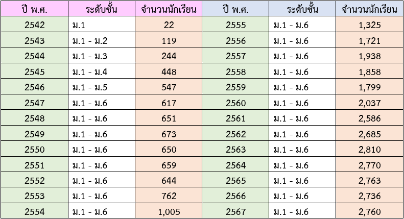 ตารางแสดงจำนวนนักเรียนตั้งแต่ปี พ.ศ. 2542 – พ.ศ. 2567